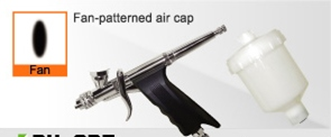 Un modelo convencional de HVLP de gravedad alimentada por una copa 125 cc, ideal para arte y bronceado. Con el patrón de pulverizado de abanico. Mínimo de línea 0.5 mm, control de flujo en el mango.
