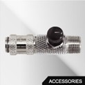 Su versatilidad permite utilizar accesorios de aerógrafos. Seguro cuando se conecta, sin fisuras al desprendimiento. Disponible hembra 1/8” y macho 1/8”, si requieres de más espigas (QD) para el uso de múltiples aerógrafos con una sola manguera, adquiérelos por separado.